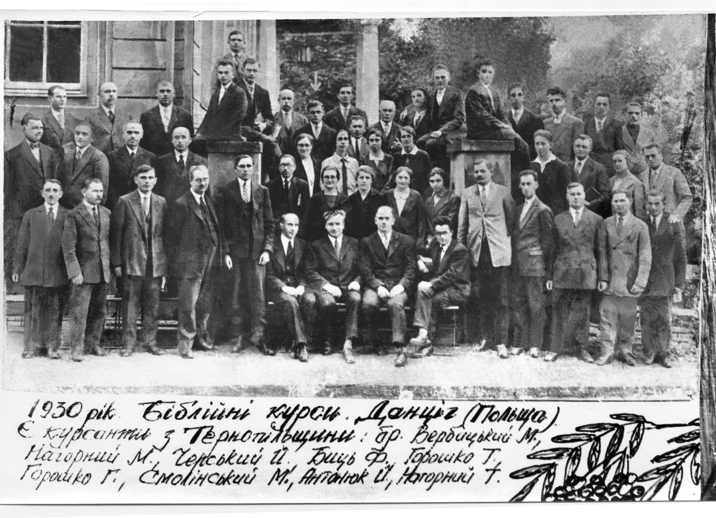 У кінці 1929 року на запрошення місії в Данциг приїжджає вчитель Біблії Павло Стехлік (чех за національністю) — і 2 березня 1930 року відкриваються тримісячні біблійні курси, на яких навчалося 25 чоловік. Це була перша п’ятидесятницька школа в Європі. Викладачами були Густав Шмідт, Густав Кіндерман, Павло Стехлік. Але, без перебільшення, найбільший вклад у навчання як у біблійній школі, так і через публікації в журналі «Примиритель» вніс Дональд Джі (в Польщі його прізвище часто писали Гее). Він народився в Англії, чотирнадцятирічним юнаком навернувся до Бога, одним із перших в Англії прийняв вчення про П’ятидесятницю. Він служив пастором, вчителем, письменником, головним редактором п’ятидесятницького журналу. Він написав більше 30 книг, у тому числі книгу про духовні дари, яку друкував і журнал «Примиритель». Його називали «вчителем балансу» через те, що уникав крайнощів у п’ятидесятницькій доктрині. Першими курсантами біблійних курсів у Данцигу були Карл Леонович, Григорій Федишин, Григорій Селюжицький, пізніше — Михайло Вербіцький, Юхим Стрєлка, Лука Горошко, Сергій Каплун, Яків Селюжицький та багато інших відомих служителів. Лише з травня 1930 року до лютого 1933 курси закінчили 271 особа. Окрім того, Густав Шмідт та його працівники за період 1929-39 років провели близько 100 одно- та двотижневих курсів у місцевих церквах для тих, хто не мав можливості навчатися у Данцигу.