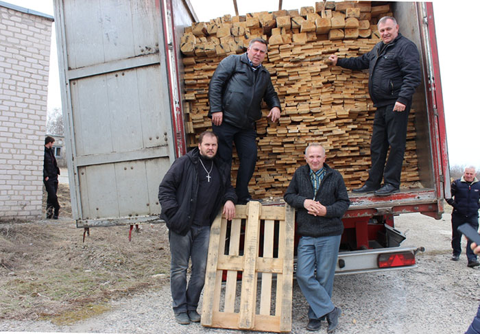 Коли дісталися до місця розвантаження лісоматеріалів, Володимир Дмитрович за мить уже був на фурі. «Ось так покладіть брус, ось так давайте, спускаймо!» — радить єпископ, і робота пішла значно жвавіше. Оптимізувавши процес, Володимир Бричка витирає спітніле чоло й посміхається: «Ну що, поїхали далі?»