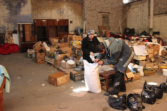 Під час цього імпровізованого фуршету (у складському приміщенні кожен примостився на чому прийшлося) точиться розмова про доволі сумні речі. Виявляється, що офіційна перепустка з окупованих територій і назад коштує до 5 тисяч гривень, тому люди на свій страх і ризик купують «липові» за 500, і попадаються на блокпостах… «Западенців на блокпостах ще можна впросити, пускають біженців, а більшість — завертають, чекають «на руку», — розповідає один із братів. — Було таке, що людей із продуктами з супермаркету не випустили. Кажу: та що ж ви робите? Хіба не зрозуміло, що останню довіру до України в цих людей вбиваєте?!» Гірко це усвідомлювати, але корупція, як іржа, проїла наше суспільство. Та перемога над нею починається з молитви Церкви.