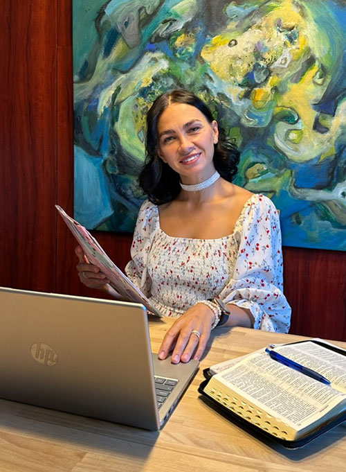 2017 року, коли народила третю дитину, довелося поставити розвиток у роботі на паузу. Саме тоді я опинилася в точці перетину двох світів — духовного й професійного. Із одного боку, я мала роки особистих біблійних досліджень, із іншого — свіжі навички візуальної комунікації, розуміння того, як складні речі донести простою мовою. Тож вирішила спробувати: стала ділитися роздумами в Instagram і Facebook — щоб тексти не лише інформували, а й торкалися сердець. Із того часу продовжую це служіння. Моя мета — не просто публікувати клікбейтні тексти чи хайпові відео, а спонукати читачів до усвідомленого богопізнання.