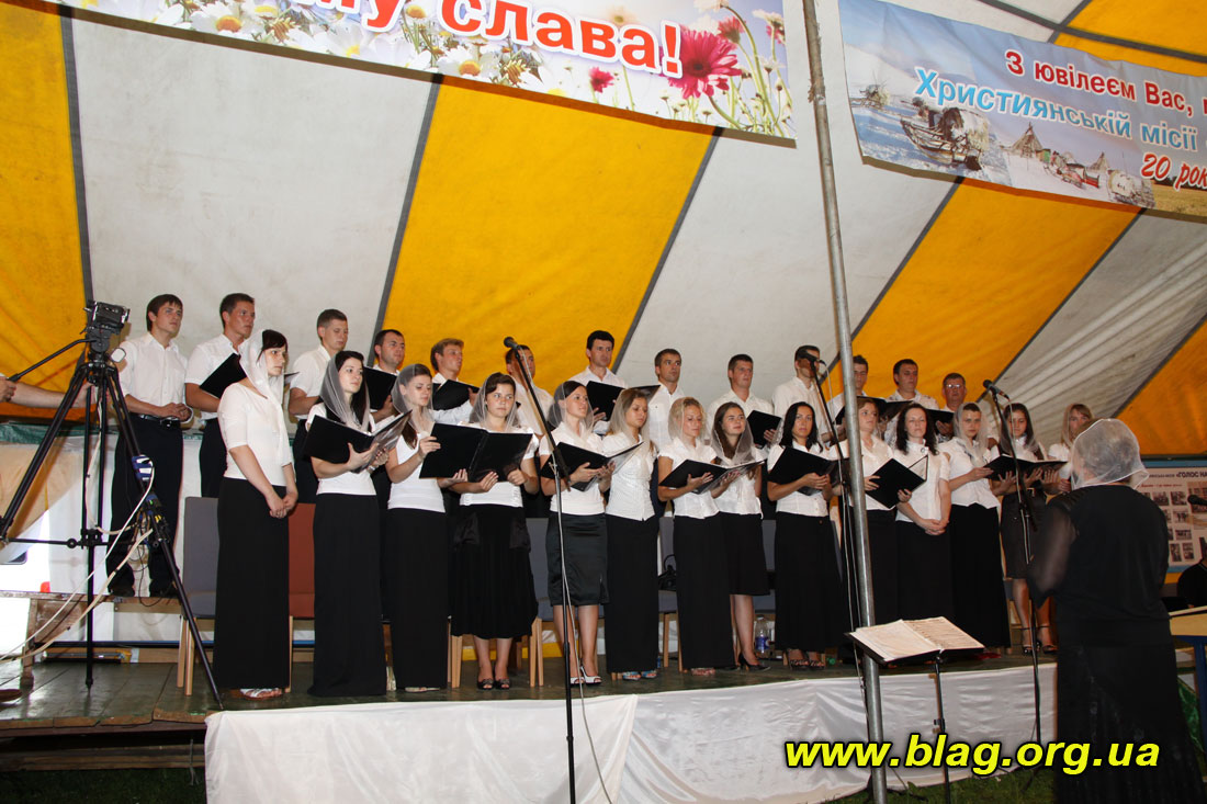 І ось заключний момент конференції. Урочисте богослужіння почалося співом хору з церкви «Благодать» міста Луцька, а також з вітального слова пастора цієї церкви Анатолія Прохора, який побажав місіонерам слухати Божий голос і мати Божий страх, бо саме це єж найголовнішим у служінні місіонера.
