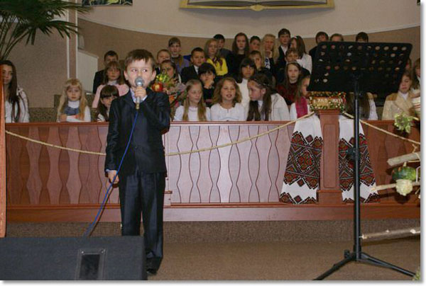 Пастор-євангеліст Генадій Ліптуга прочитав уривок із послання до Галатів 6:7: «Не обманюйтеся, Бог осміяний бути не може. Бо що тільки людина посіє, те саме й пожне!». Хор виконав пісню «Мій Ісус», а сестра Надія Балагутрак прочитала вірш «Блаженство бути в Господа руках».
