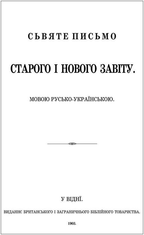 Пройшло багато століть від прийняття християнства Україною до появи повної Біблії живою, народною українською мовою. Одна з причин — не було пекучої потреби в цьому, бо книги, які приходили до нас з Болгарії та Сербії церковнослов’янською мовою були здебільшого зрозумілі людям. Також мало хто з інтелігенції відважувався на важку працю перекладу Біблії на українську мову в час, коли царський уряд поборював всякі спроби розвивати українські мову й культуру.