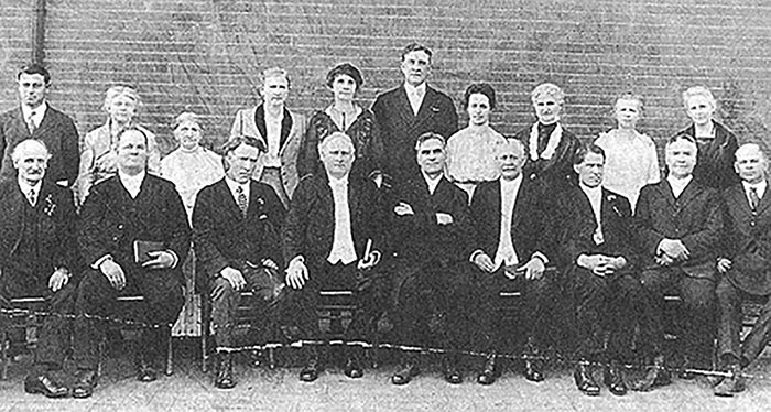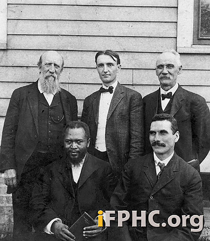 Джон Лейк (справа внизу) з лідерами пробудження на Азуса-стріт, біля нього сидить Вільям Сеймур